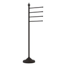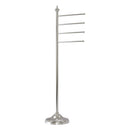 This elegantly designed freestanding swing arm towel stand provides a convenient and stylish space to hang your favorite towels. Towel stand has 4 pivoting arms so that you can maximize your space. Large base is weighted to help prevent tipping. Towel stand is made of the finest solid brass materials so that it will not rust or corrode and is provided with one of our designer lifetime finishes.