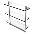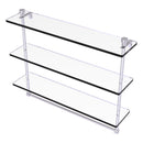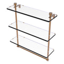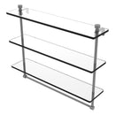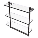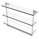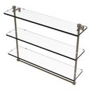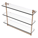 Add space and organization to your bathroom with this simple, contemporary style glass shelf. Featuring tempered, beveled-edged glass and solid brass hardware this shelf is crafted for durability, strength and style. Integrated towel bar provides space for your favorite decorative towels or for your everyday use. One of the many coordinating accessories in the Allied Brass Collection of products, this subtle glass shelf is the perfect complement to your bathroom decor.