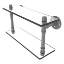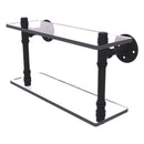 Increase bathroom storage using this unique two tier glass shelf. This accessory is made using 2 levels of thick 3/8 Inch bevelled-edged glass for strength and safety. The Pipeline collection is the latest innovation for bathroom fittings from the Allied Brass Brand of products. This double glass shelf gives the industrial look of pipe fittings while blending aptly with both modern and traditional bathroom decor. This accessory is powder coated with lifetime materials to provide a decorative and clean finish. No wonder, this glass shelf gives continual service for years without any trouble. The choice of superior materials makes this item free from corrosion and rust. Double glass shelf mounts firmly with color coordinating screws and comes with a limited lifetime warranty.