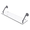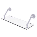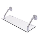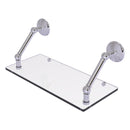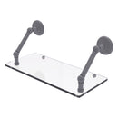 A floating shelf delivers a unique look to any bathroom or powder room. Unlike other shelves, the surface of our floating shelf is suspended below the arms instead of propped up by the brackets. This makes the shelf look like it's floating in mid-air. Our floating glass shelf features solid brass arms that reach down to the glass surface. Shelf also uses solid brass supports under the back edge of the glass for additional strength and support.