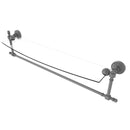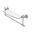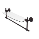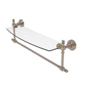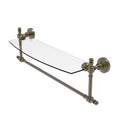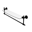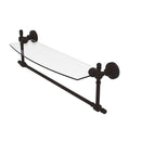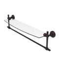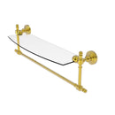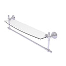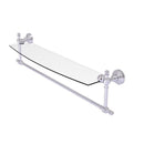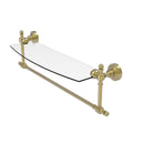 Add space and organization to your bathroom with this simple, contemporary style glass shelf. Featuring tempered, beveled-edged glass and solid brass hardware this shelf is crafted for durability, strength and style. Integrated towel bar provides space for your favorite decorative towels or for your everyday use. One of the many coordinating accessories in the Allied Brass Collection of products, this subtle glass shelf is the perfect complement to your bathroom decor.