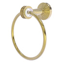 Towel rings are the perfect accessory for guest bathrooms or powder rooms. This elegant design echoes the circular design everywhere: the holder itself, arm, and matching hardware. Finely crafted of solid brass with accents of clear acrylic and a lifetime designer finish is the perfect blend of style and performance.