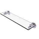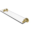 Add space and organization to your bathroom with this simple, contemporary style glass shelf. Featuring tempered, beveled-edged glass and solid brass hardware this shelf is crafted for durability, strength and style. One of the many coordinating accessories in the Allied Brass Tribecca Collection, this subtle glass shelf is the perfect complement to your bathroom decor.