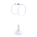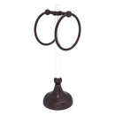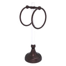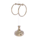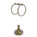 Add an interesting design element to your bathroom with this free standing guest towel stand. It has hanging rings to hold two hand towels conveniently next to the sink. Its classic traditional style will complement your decor and with a weight in the base it will stay stable on the countertop. Made from all solid brass, this decorative accessory will provide a lifetime of use.