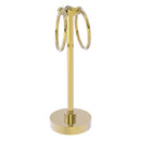 This elegant vanity top guest towel holder will add style and convenience to your bathroom décor. Guest towel holder has two rings to keep your towels within reach of the sink where they are needed. Guest towel stand is ideally sized for hand towels and washcloths. Heavy base will help prevent stand from tipping.