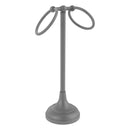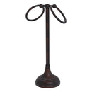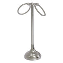 This elegant vanity top guest towel valet will add style and convenience to your bathroom décor. Guest towel valet has two rings to keep your towels within reach of the sink where they are needed. Guest towel stand is ideally sized for hand towels and washcloths. Heavy base will help prevent stand from tipping.