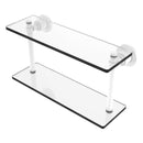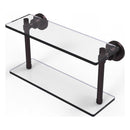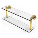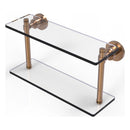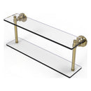 Add space and organization to your bathroom with this simple, contemporary design 2-tier glass vanity shelf. Featuring tempered, beveled-edged glass and solid brass hardware this shelving unit is crafted for durability, strength and style. One of the many coordinating accessories in the Allied Brass collection of products, this subtle glass shelf unit is the perfect complement to your bathroom decor.