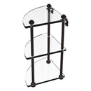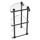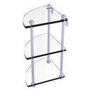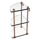 Add space and organization to your bathroom with this simple, contemporary design 3-tier glass vanity corner shelf. Featuring tempered, beveled-edged glass and solid brass hardware this shelving unit is crafted for durability, strength and style. One of the many coordinating accessories in the Allied Brass collection of products, this subtle glass shelf unit is the perfect complement to your bathroom decor.