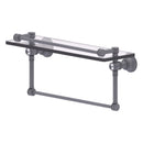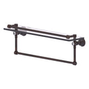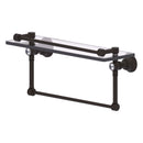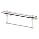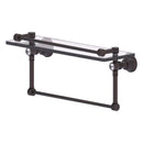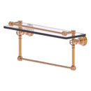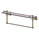 Reimagine your bathroom with this finely crafted gallery glass shelf with integrated towel bar and crystal accents. The gallery rail on the shelf is made of solid brass and will keep your items securely in place. Solid brass integrated towel bar provides a creative space for your towels. Traditional style and superior quality resonate from this hand crafted accessory. Featuring thick; beveled-edge glass and solid brass hardware this shelf is crafted for durability strength and style. One of the many coordinating accessories in the Allied Brass Collection of accessories; this decorative gallery glass shelf and integrated towel bar with the added sparkle of crystal is the perfect complement to your bathroom decor.