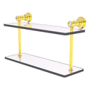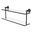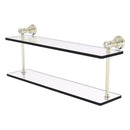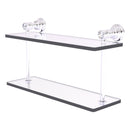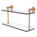 Reimagine your bathroom with this finely crafted double glass shelf with crystal accents. The 2 sturdy glass shelves provide plenty of space for your items. Traditional style and superior quality resonate from this hand crafted accessory. Featuring thick; beveled-edge glass and solid brass hardware this shelf is crafted for durability strength and style. One of the many coordinating accessories in the Allied Brass Collection of accessories; this double glass shelf with crystal accents is the perfect complement to your bathroom decor.