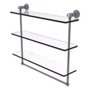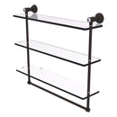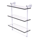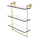 Add a beautiful focal point to your bathroom with this elegant and functional triple shelf unit with crystal accents. Its classic traditional design will compliment your decor as the three glass shelves give you plenty of practical shelf space. The towel bar underneath is perfect for hanging hand towels. Made from all solid brass this decorative shelf with the brilliance of crystal will provide a lifetime of use.