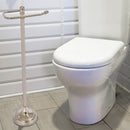 Add the finishing touch to your bathroom with this elegant free standing European style toilet tissue stand. When wall space is at a premium this product works great to provide the essential part of your project. European style hook makes changing the roll quick and easy, so there should be no more arguments about changing the roll. Made of the finest solid brass materials with a sturdy base that will keep the stand secure from tipping.