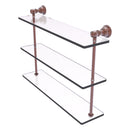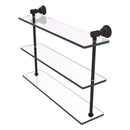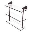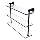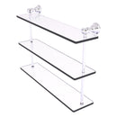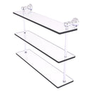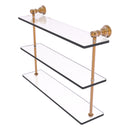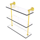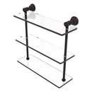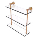 Reimagine your bathroom with this finely crafted triple glass shelf. Traditional styling and superior quality resonate from this hand crafted glass shelf. The 3 tiers of this shelf make great use of your wall space while providing plenty of room for storage. Featuring thick, beveled-edge glass and solid brass hardware this shelf is crafted for durability strength and style.