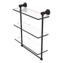 Add a beautiful focal point to your bathroom with this elegant and functional shelf unit. Its classic traditional design will compliment your decor as the three glass shelves give you plenty of practical shelf space. The towel bar underneath is perfect for hanging hand towels. Made from all solid brass this decorative shelf will provide a lifetime of use.