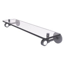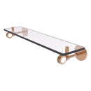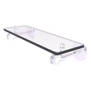 This elegant and fun design ensures this glass shelf will leave a statement in your bathroom. Shelf includes bold use of clear acrylic to create an almost hypnotic look against the brass construction. Featuring tempered, beveled-edge glass and solid brass hardware this shelf is crafted for durability strength and style. Shelf is finished with our designer lifetime finishes to provide unparalleled performance.
