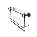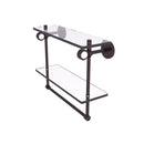 Add a beautiful focal point to your bathroom with this elegant and functional double glass shelf unit. It's clean contemporary design with acrylic accents will compliment your decor as it's integrated towel bar underneath is perfect for hanging hand towels. Having two shelves offers plenty of space for storing and displaying your items. Made from all solid brass this decorative shelf will provide a lifetime of use.