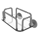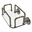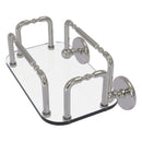 This elegant wall mounted guest towel tray will add style and convenience to your bathroom décor. Ideally sized to hold your favorite guest towels or a standard box of Kleenex Tissues. Keep your vanity top organized and clutter free with this wall mounted accessory. Tempered glass and brass rails are used to make this item sturdy and stylish. Any of our lifetime designer finishes will provide a lifetime of use.