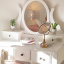 Add this stylish makeup mirror to your bathroom décor for an elegant touch. Makeup and shaving mirror pivots and tilts to allow for complete versatility in viewing angles. Overall Height of the mirror is 15 Inches. Mirror is made from the finest solid brass materials. 8 inch double faced mirror features clear magnification on one side.