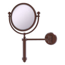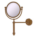 Add this stylish wall mounted makeup mirror to your bathroom décor for an elegant touch. Makeup and shaving mirror pivots and tilts to allow for complete versatility in viewing angles. Mirror is made from the finest solid brass materials. 8 inch double faced mirror features clear magnification on one side.