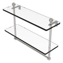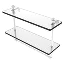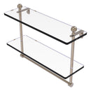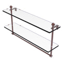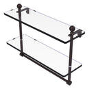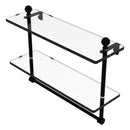 Add space and organization to your bathroom with this simple, contemporary style glass shelf. Featuring tempered, beveled-edged glass and solid brass hardware this shelf is crafted for durability, strength and style. Integrated towel bar provides space for your favorite decorative towels or for your everyday use. One of the many coordinating accessories in the Allied Brass Collection of products, this subtle glass shelf is the perfect complement to your bathroom decor.