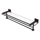 Add a flare of style to your décor with this contemporary glass shelf. Modern style decorative shelf can be used anywhere in the home for a great space to store your products. Gallery rail will keep your items secure while the integrated towel bar provides a creative space for your towels. Tempered glass is 3/8 Inches thick and all of the hardware is made of solid brass and finished with the highest quality materials to provide a lifetime of beauty.
