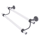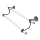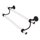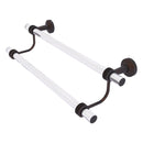 Brass and acrylic meet in this design that subtly shows off the strength of each material. This very elegant double towel bar will complement--and show off--virtually any towel hung upon it. Finely crafted of solid brass with accents of clear acrylic create the unique design to add the finishing touch to your project. Double towel bar is finished with our designer lifetime finishes to provide unparalleled performance.