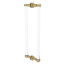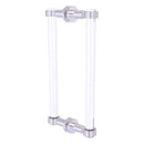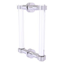 The clean sharp lines of this modern back-to-back shower door pull fits well with any bathroom decor ranging from modern to traditional. Made from high quality solid brass with accents of clear acrylic and provided with your choice of any of our lifetime designer finishes, the shower door pull is extremely attractive yet highly functional. Ideal for glass shower doors of all sizes and styles, the easy to install back-to-back shower door pull comes with two durable u-shaped pulls made from solid brass and all the hardware necessary for installation.