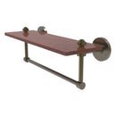 Add space and organization to your bathroom with this simple, traditional style IPE Ironwood Solid Wood shelf. Featuring premium IPE Ironwood and solid brass hardware this shelf is crafted for durability, strength and style. Solid brass integrated towel bar is a great place for your favorite towels. Ironwood is sanded to perfection and protected with a clear topcoat. One of the many coordinating accessories in the Allied Brass Collection, this subtle wood shelf is the perfect complement to your bathroom decor.
